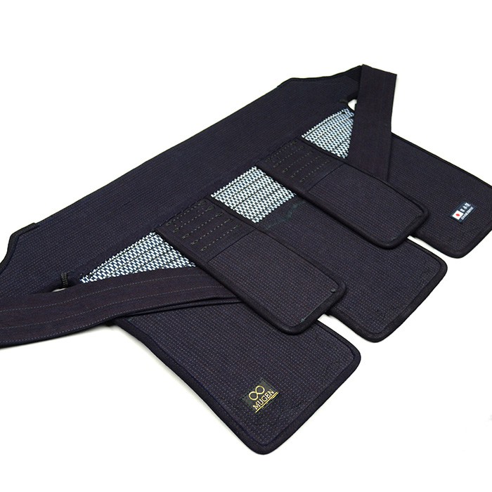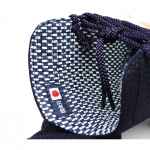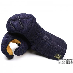 | 籠手仕様 | 5.5mmピッチ刺 布団柔軟素材使用 頭総織刺仕立 日本製藍染木綿生地 日本製藍染織刺生地 手の内ミクロパンチ仕立 飾り糸黒 ヘリ紺鹿革仕立 布団えぐり入り |