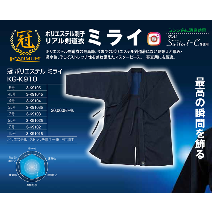 最先端素材を使用した高機能なポリエステル剣道着です。